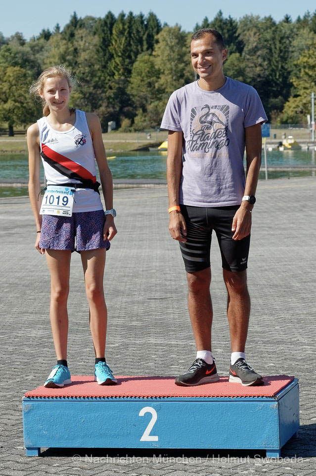 Oktoberfestlauf und Swimrun auf der Regattastrecke München-Oberschleißheim, Sonnig und warm – neuer Streckenrekord durch Thea Heim.