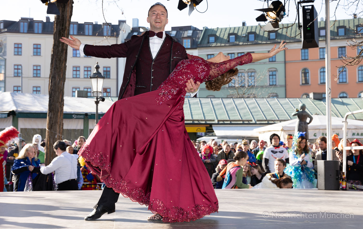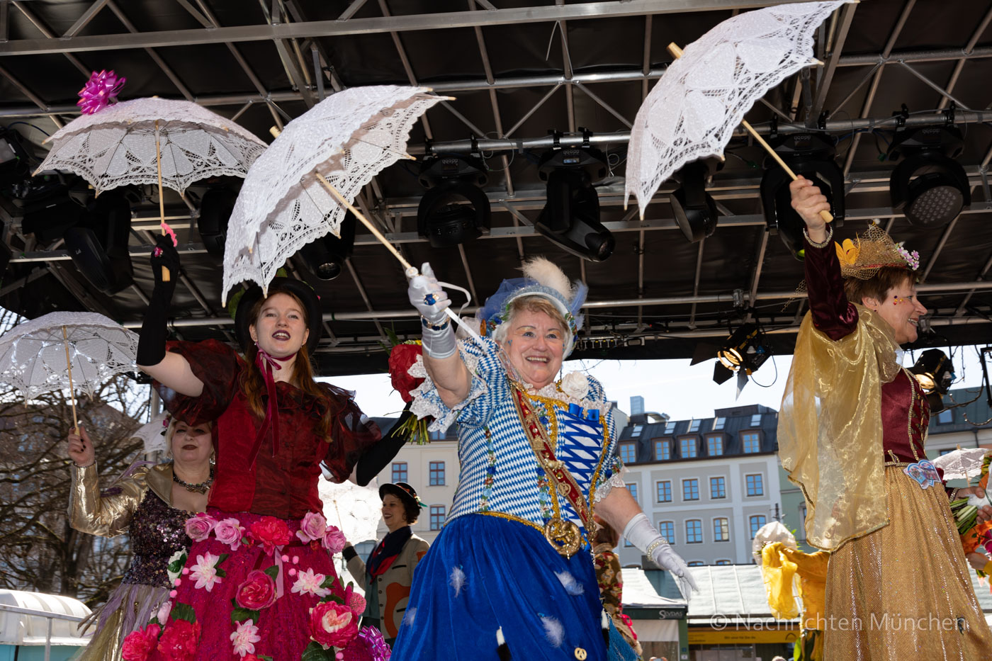 Den Höhepunkt der narrischen Zeit markiert in München der „Tanz der Marktweiber“ am Faschingsdienstag. Um 9.30 Uhr war Startschuss des Faschingstreibens auf dem Viktualienmarkt. Die Münchner Faschingsgesellschaft heizte den Gästen mit einem Warm-up auf der Bühne im Biergarten ein. Das Bühnenprogramm startete offiziell um 10 Uhr mit der Begrüßung durch Bürgermeisterin Verena Dietl und Kommunalreferentin Kristina Frank. Es folgte der Auftritt des Narrhalla- Prinzenpaars samt Prinzengarde. Um 11 Uhr sorgten die „Tanzenden Marktweiber“ auf der Bühne mächtig für Stimmung. Im Anschluss ging es bis 19 Uhr stimmungsvoll mit Musik, Speisen und Getränken an den Ständen weiter.
