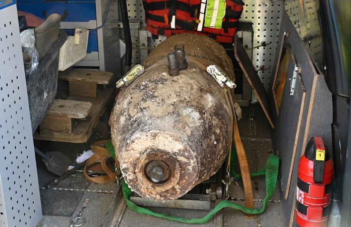 Gegen 14.00 Uhr konnte der Sprengmeister Entwarnung geben. Die amerikanische Fliegerbombe wurde ohne Zwischenfälle entschärft. Bei Bauarbeiten war die 500 Kilogramm schwere Bombe in einer Tiefe von 1,20 Metern gefunden worden. Um den Evakuierungsbereich möglichst klein halten zu können, wurden 24 Überseecontainer durch Einsatzkräfte der Feuerwehr und des THW um die Fundstelle aufgestellt und mit Wasser befüllt.