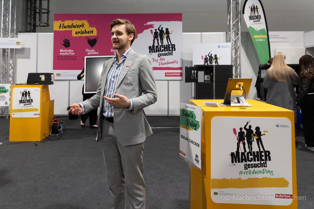 Mit einem Messebesuch den Nachwuchs für das Handwerk begeistern: Neben beeindruckenden Leistungen, die in den Hallen bestaunt werden können, dürfen junge Besucherinnen und Besucher in der Sonder- und Aktionsschau YoungGeneration selbst Hand anlegen und verschiedene Techniken ausprobieren. Ob per VR-Brille einen Einblick in die Wurstküche werfen, Baggerarbeiten via Simulator durchführen oder Quarkteigbrezeln backen – hier zeigen Innungen und Verbände bei mehr als 50 Mitmachaktionen, wie spannend und modern das Handwerk ist. Außerdem informieren Expertinnen und Experten von „Macher gesucht!“, der Nachwuchskampagne des Bayerischen Handwerkstages (BHT), über Karrierechancen in den 130 Berufen im Handwerk.