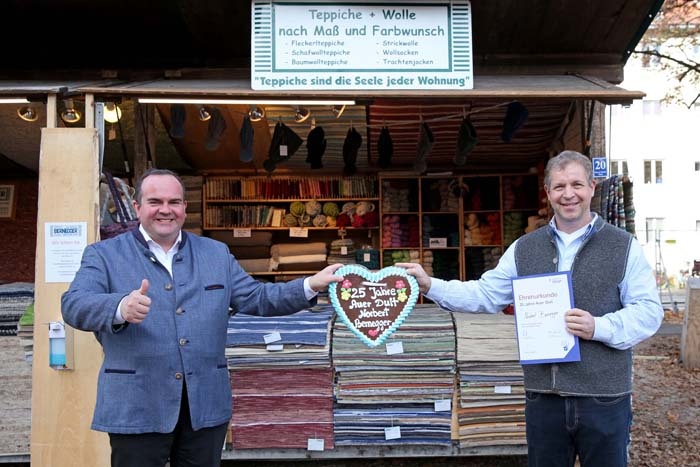 Auf der Kirchweihdult 2020 wurden heute drei Marktkaufleute mit Meisterbrief in ihrem Handwerksfach für ihre langjährige Teilnahme an den Auer Dulten von Clemens Baumgärtner, Referent für Arbeit und Wirtschaft und Dultleiter, geehrt.
