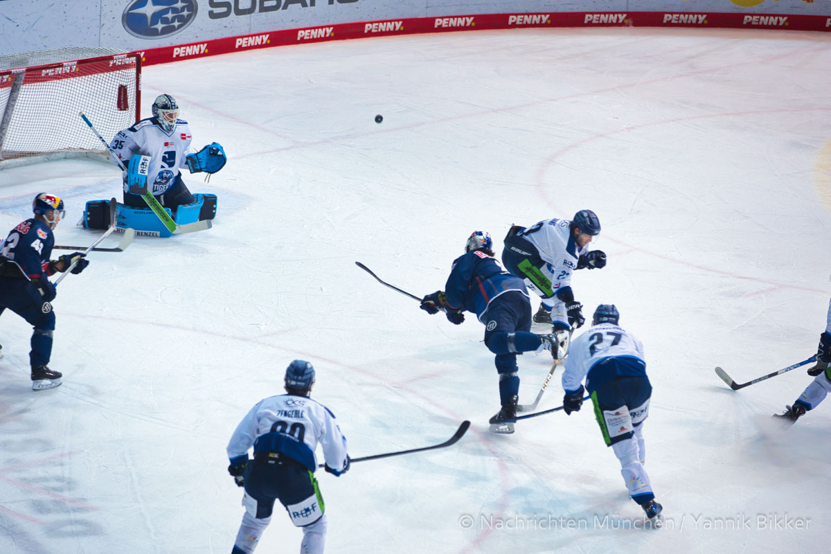 Und intensiv ging es auch im Schlussdrittel weiter: München mit fünf Minuten Powerplay, die Tigers ließen wenig zu. Dann 4-gegen-4 und die erste Führung für die Red Bulls durch Eder (51.). Aber auch Straubing kämpfte sich zurück, Jason Akeson erzielte im Powerplay das 4:4. Overtime! Doch die Entscheidung fiel erst im Penaltyschießen durch den Treffer von Ortega.